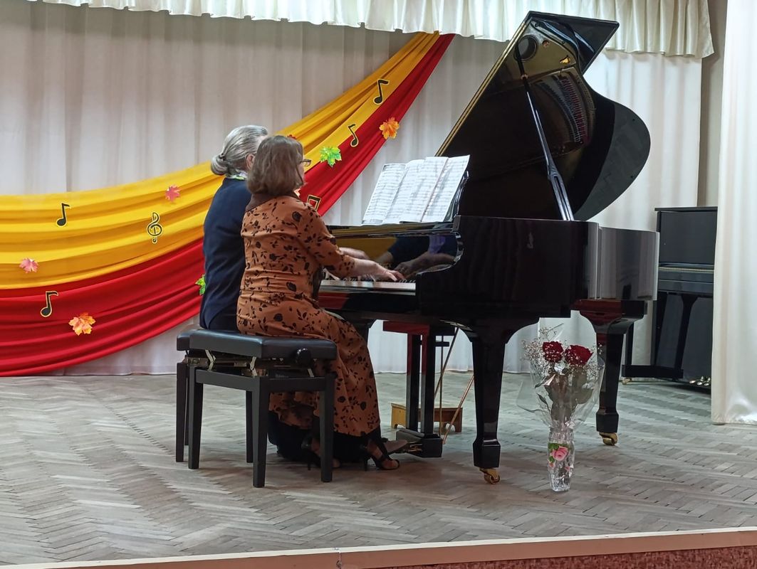 Заключительным аккордом в концерте стало выступление преподавателей класса фортепиано Орловой Елены Дмитриевны и Ильиной Татьяны Юрьевны. В их исполнении прозвучал Вальс к повести А. С. Пушкина «Метель» на музыку Георгия Свиридова. Своим концертным номером они поздравили юных пианистов и всех почитателей фортепианного искусства.